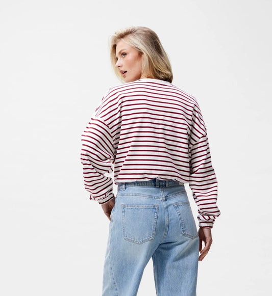 Striped sweater with elastic hems