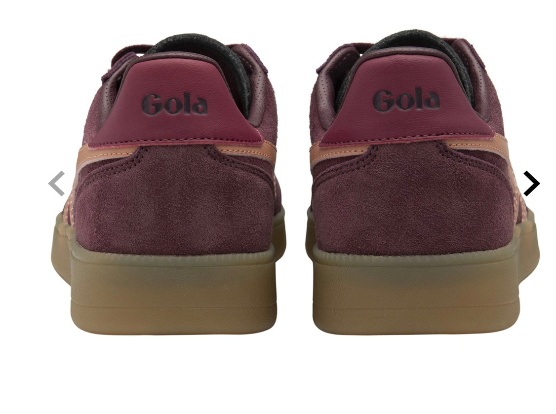 Avec sa lignée qui remonte la voûte de conception de Gola en 1976, Viper combine une tige courte et élégante en T avec un revêtement à sept œillets. La combinaison est un entraîneur d'héritage parfaitement proportionné fini avec une semelle en caoutchouc tendance. Nous adorons les lignes minimalistes de cette entraîneuse en daim en peluche pour femmes, présentée ici dans le vin windsor avec une garniture de wingflash Gola en terre cuite et une languette de talon cerise, Viper nous ramène à l'apogée de Gola.