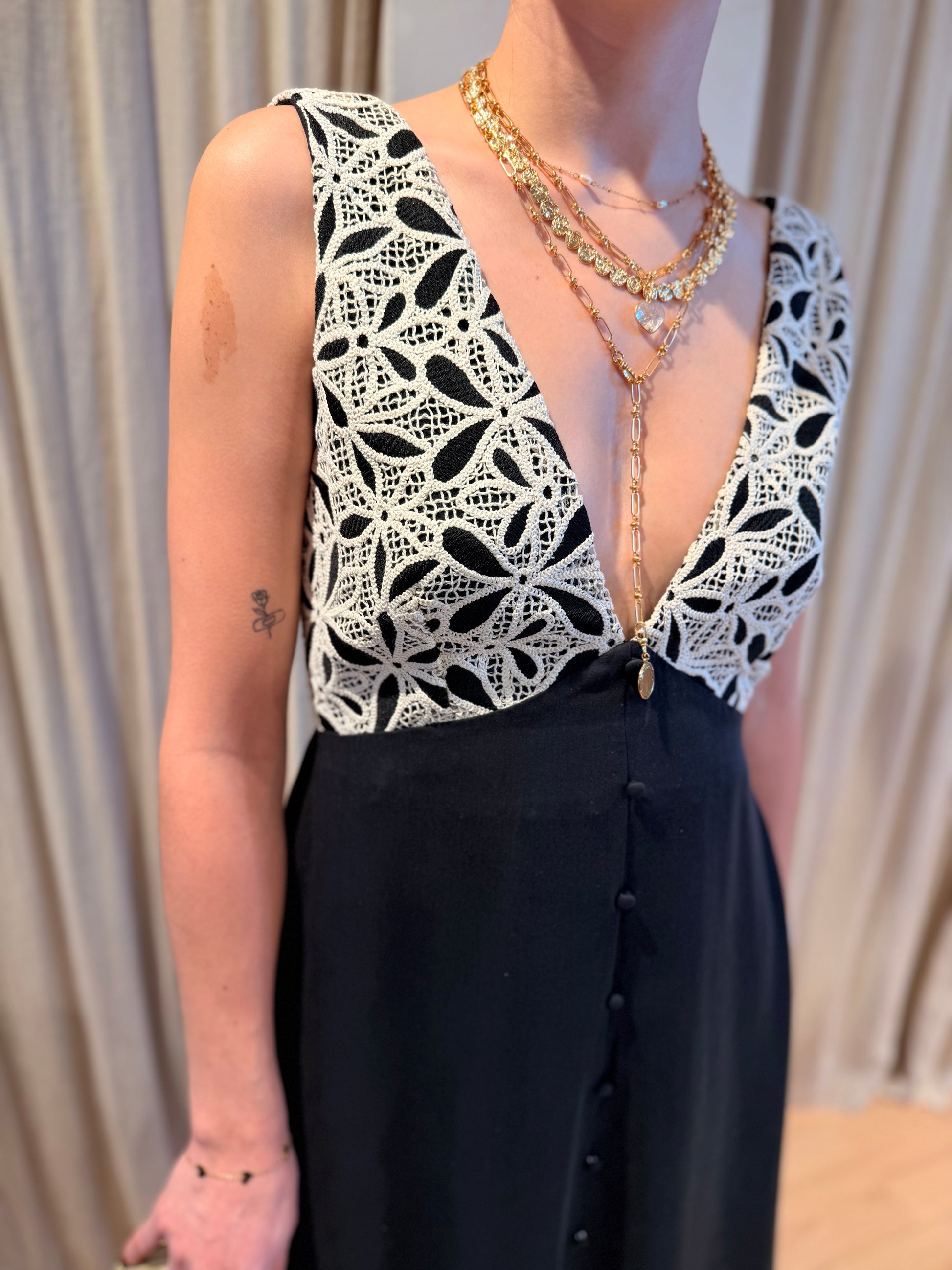 Robe corset en crochet et bas boutonné en viscose